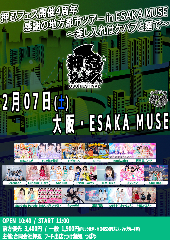 『押忍フェス開催4周年 感謝の地方都市ツアー in ESAKA MUSE〜差し入れはケバブと麺で〜』